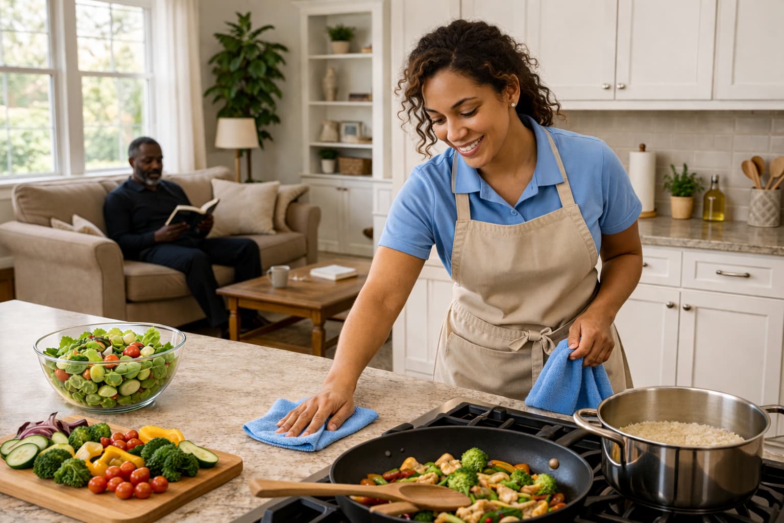 A clean and safe home environment plays a vital role in overall well-being. Our caregivers assist with light housekeeping, laundry, and nutritious meal preparation based on individual preferences.